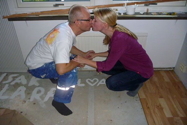 Hon sätter sig intill mig och fångar mina ögon med en ovanligt djup blick. ”Du… ska vi inte ta en paus och kramas lite”? frågar hon medan hon tar bort hammaren ur min hand.